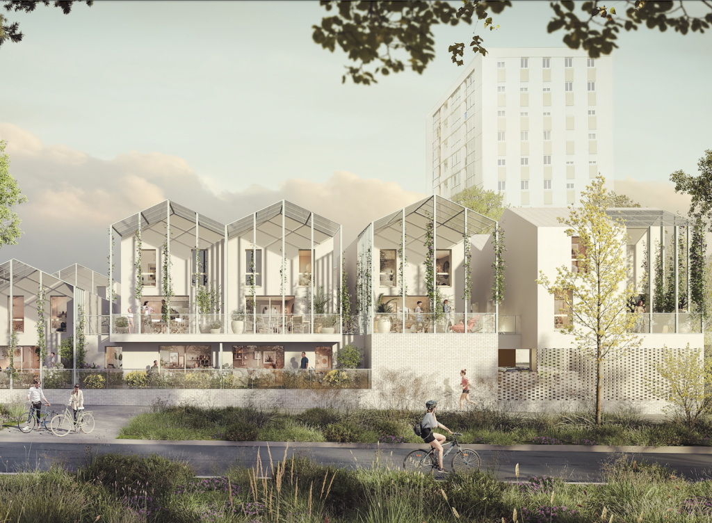 Conçu par Atelier Arcau, PRÉLUDE propose une architecture sobre, lumineuse et inspirée des serres horticoles du parc voisin.